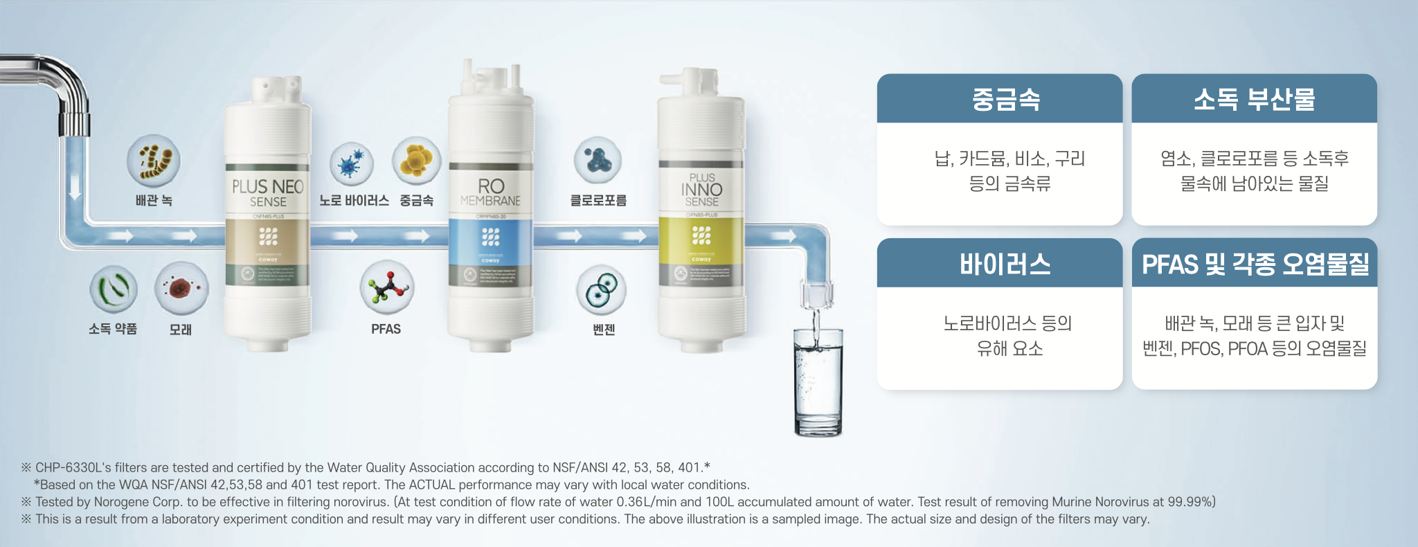 | Filter Cartridge | STEP 1) Plus Neo-sense filter STEP 2) RO membrane filter STEP 3) Plus Inno-sense filter |